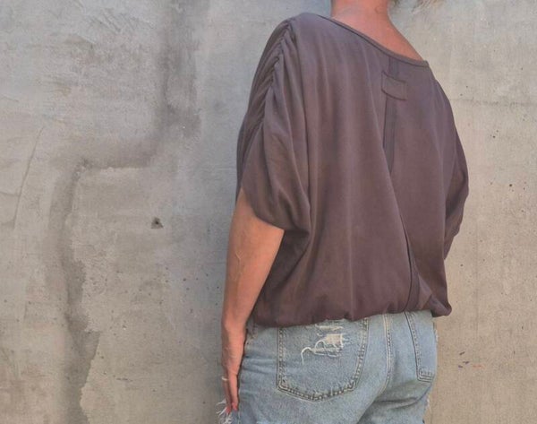 Deze losvallende top in een diepe chocoladebruine tint is het perfecte item voor een relaxte maar stijlvolle look. De soepele stof valt mooi om het lichaam en de speelse details op de schouder en rug geven de top net dat beetje extra. De ronde hals en de lichte plooien maken het een comfortabele keuze voor elke dag.