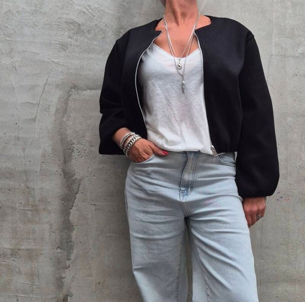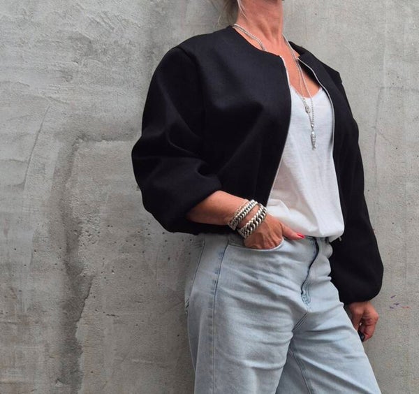 Het korte model met rits en elastische mouwen geeft een sportieve én stijlvolle uitstraling. Perfect te dragen op jeans of jurken. One size, draagbaar t/m maat 42."