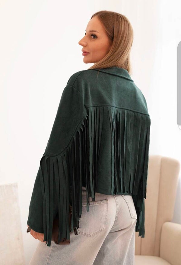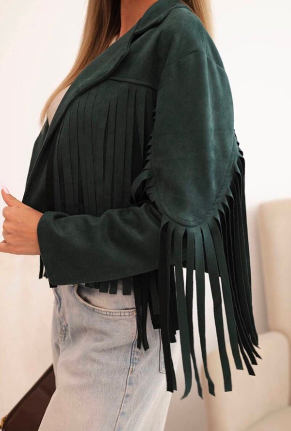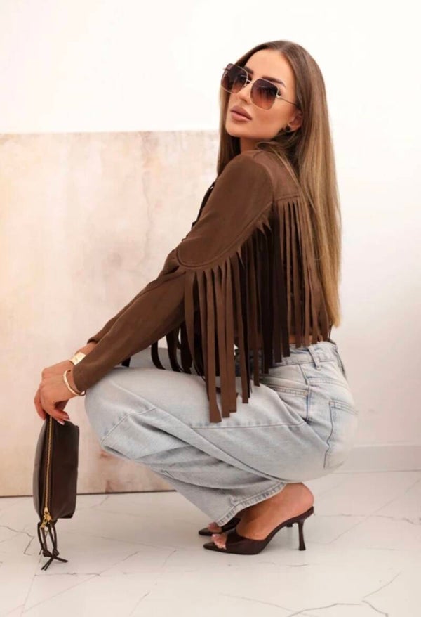 Een echte eyecatcher! Het korte model met speelse franjes geeft elke outfit een stoere, maar stijlvolle touch. Gemaakt van zacht suède en heerlijk te combineren met jeans of jurken.